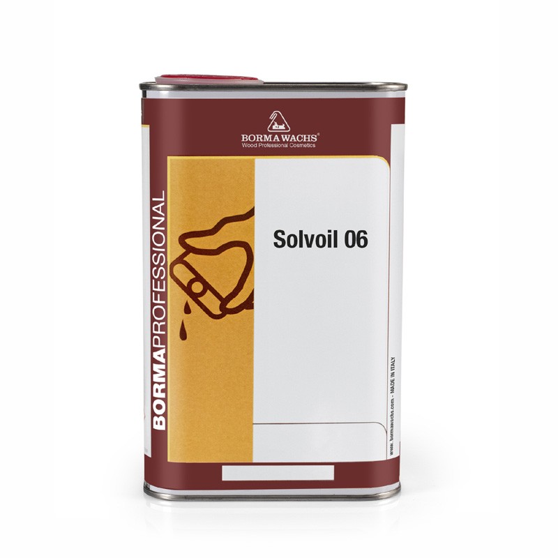 Solvoil 06 Diluyente especial para la dilución equilibrada de los aceites Borma Wachs. Gracias a su especial velocidad de secado gradual, Solvoil 06 permite aumentar el tiempo de endurecimiento del aceite diluido. Se puede agregar fácilmente en cualquier proporción.