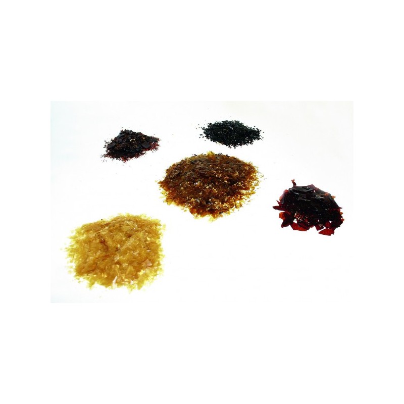 Natural shellac flakes for individual preparation of shellac polishes or finishing complements for the restoration. It gives the surfaces a particular effect of brilliance, dry and velvety to the touch; highlights the grain of the wood, giving a pleasant aesthetic effect.