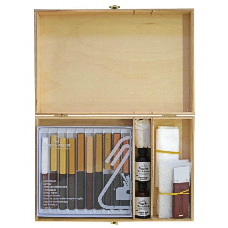 Bolsa profesional lista para el retoque de todas las superficies de madera. Un kit impresionante y resistente para enfrentar esos pequeños problemas molestos que se presentan a menudo durante las operaciones de ensamblaje y acabado. Una pequeña inversión para lograr un alto nivel de calidad y clientes y evitar el riesgo de quejas.